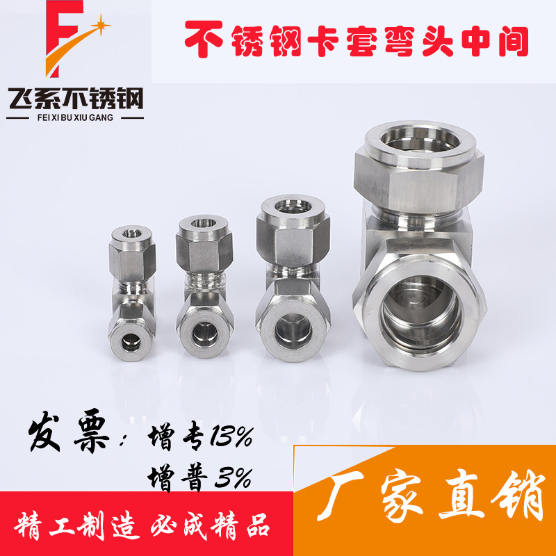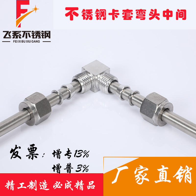 304 stainless steel cutting sleeve type joint cutting sleeve elbow bending through joint right angle cutting sleeve stainless steel gas source pipe joint