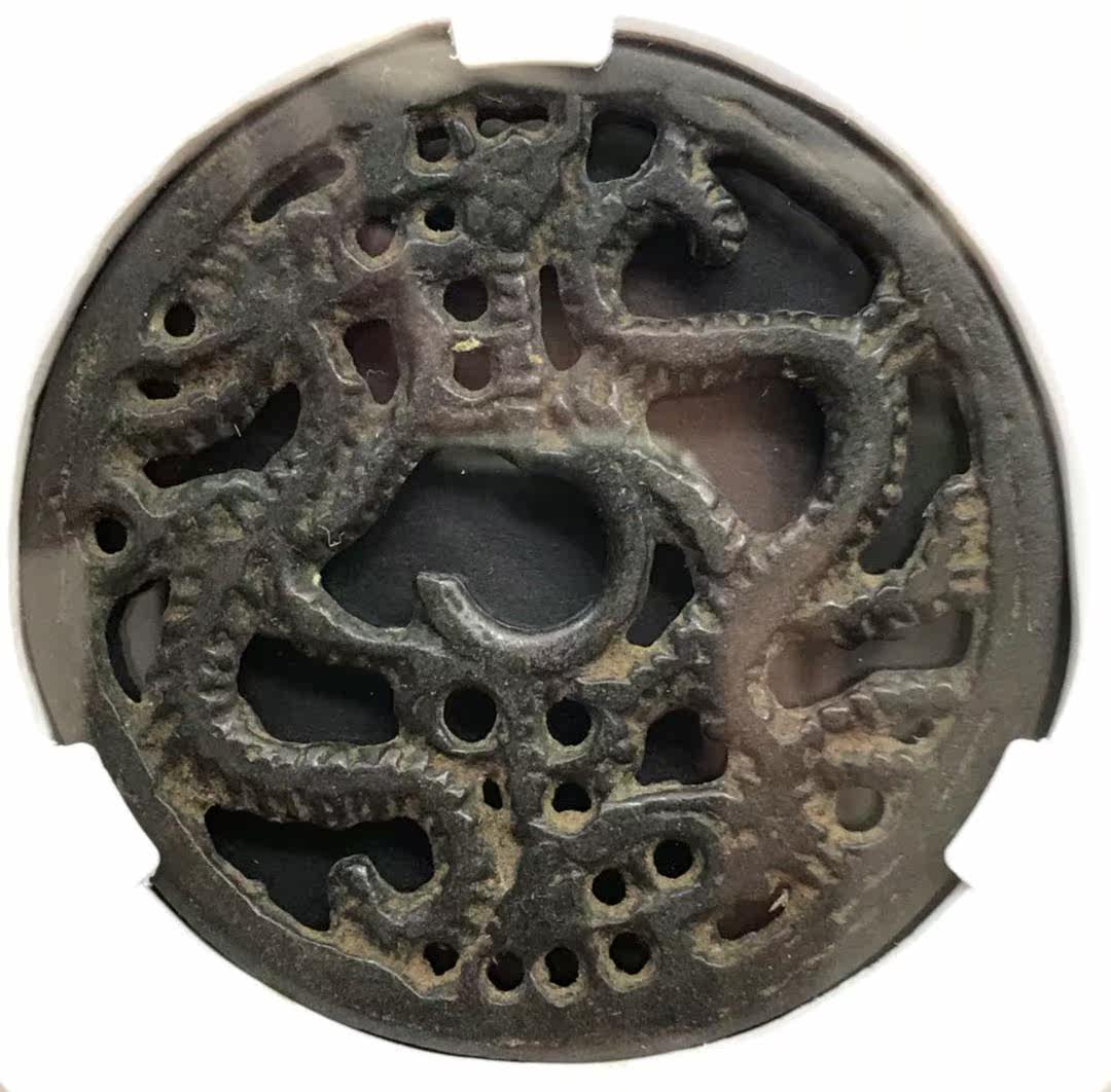 Song Yuan's large hollowed-out money costs Double Dragon Opera Pearl ACG Rating Coin 70