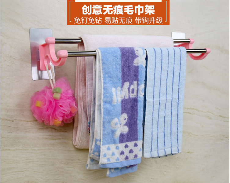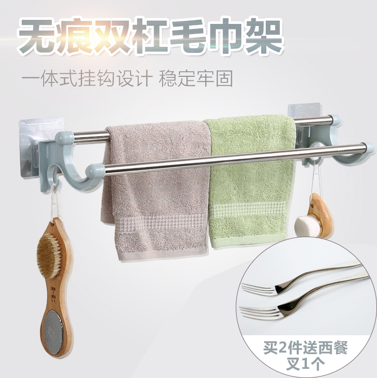 Adhesive Stainless Steel Towel Rack Free of perforated bathroom towels Towel Rod toilet Makeup Room Double-Rod Towel Rack
