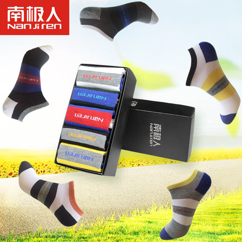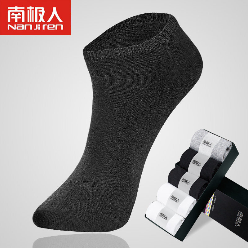 (5 double) socks men's short socks slim summer sports invisible socks short cylinders breathable low-help cotton socks black white