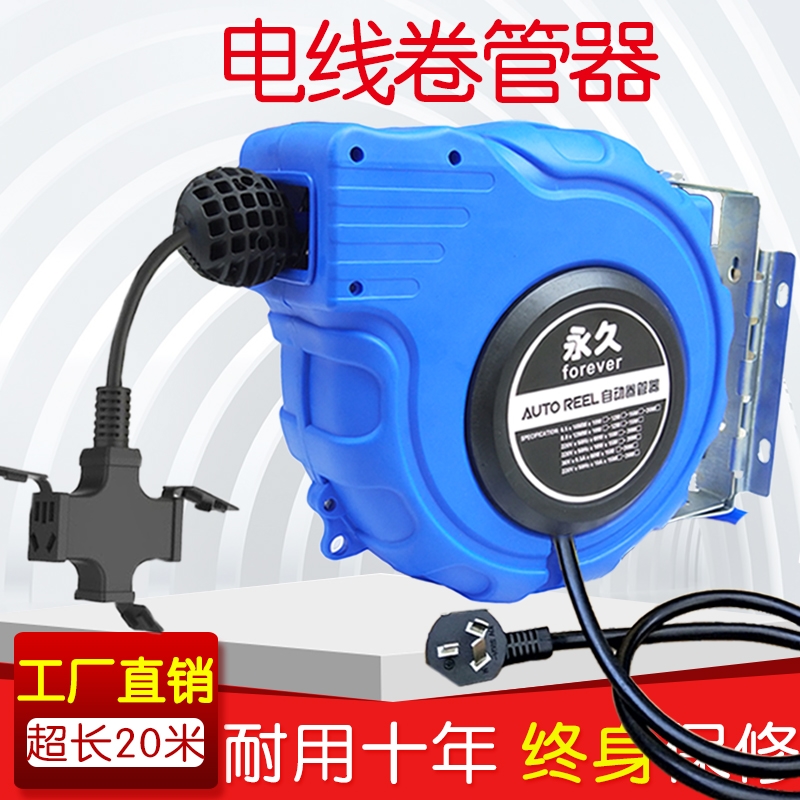 Automatic telescopic electric drum reel recovery reel winder retracted row insert national standard cable recycler 20 meters