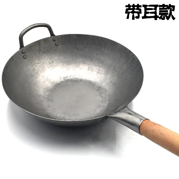 CCK Hong Kong Chen Hutchison wood single handle flat bottom cooked iron without coating Traditional manual hand beating pure iron pan frying pan