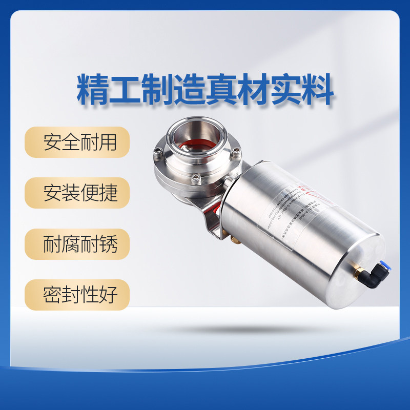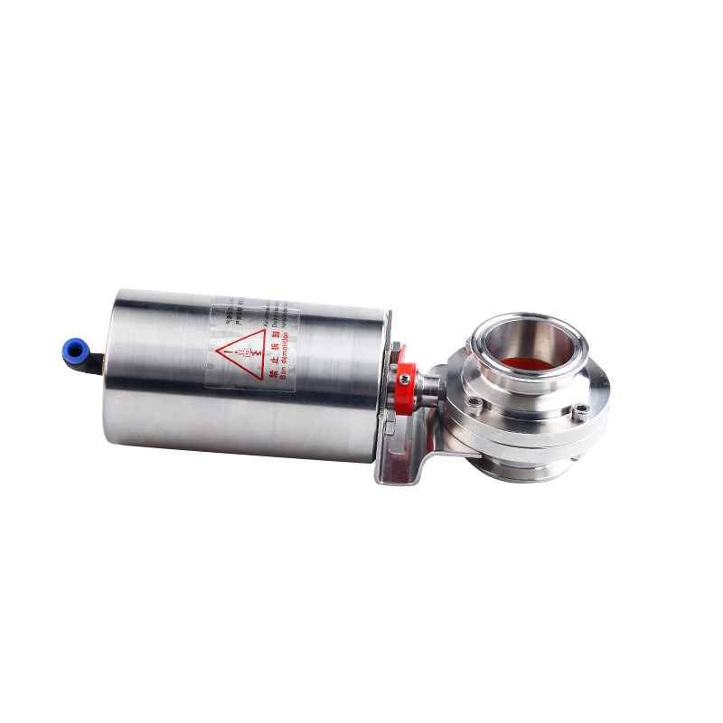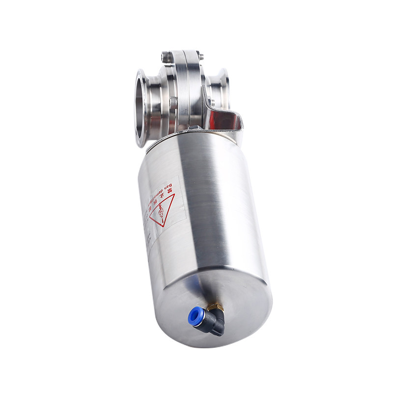 Kequan 304 stainless steel sanitary grade quick-install pneumatic dust butterfly valve clamp chuck soft seal vertical single-acting