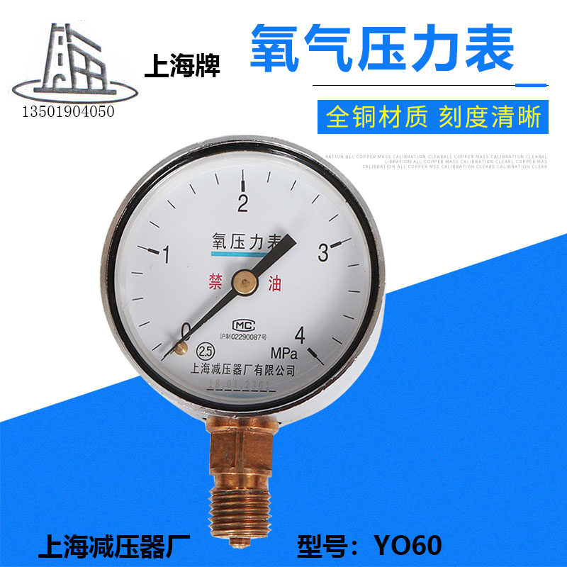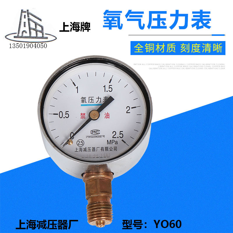 Shanghai brand of oxygen surface of Shanghai Pressure Gas Pressure Meter YO60 2 5 25 4 Oxygen Reducer pressure gauge