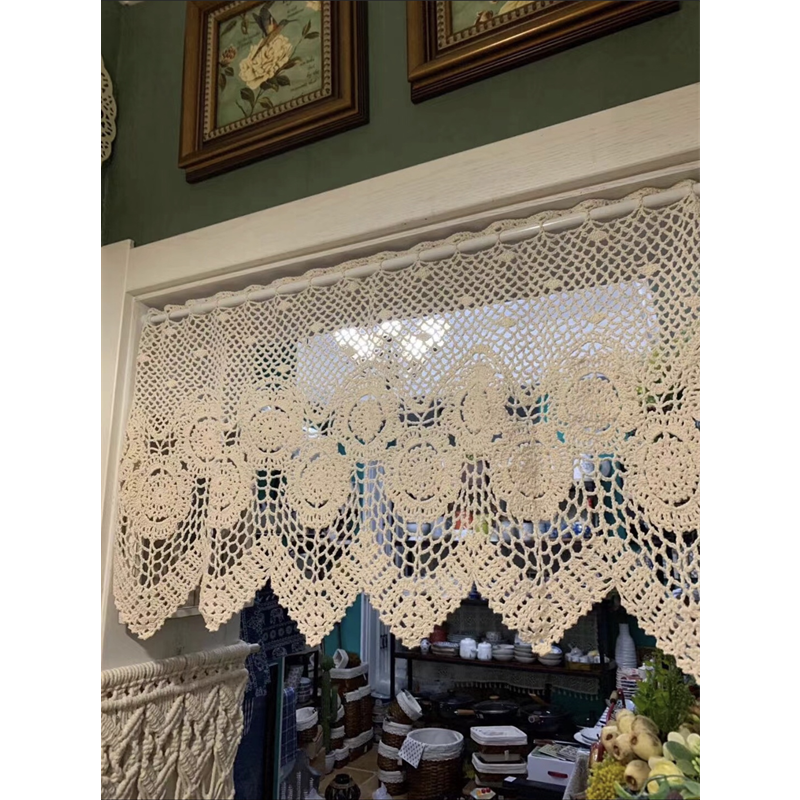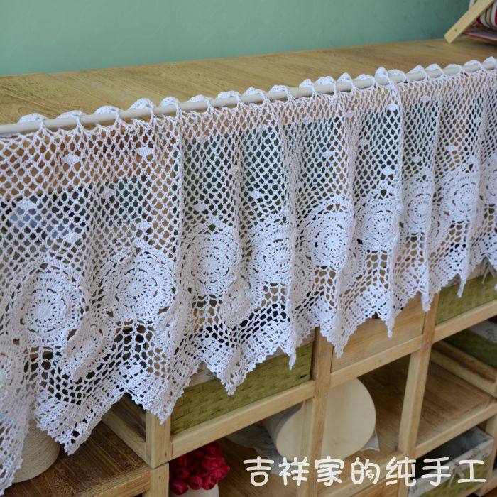 Mascot Handmade Hook Crochet Hook Flower Fields Hollowed-out Coffee Blinds Wave Lace Feng Shui Window Door Curtain half-curtain white rice