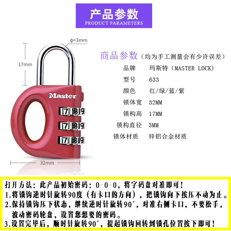 Master Lock Master Lock Backpack Leather Case Zinc Alloy Password Padlock Suitcase Backpack Lock