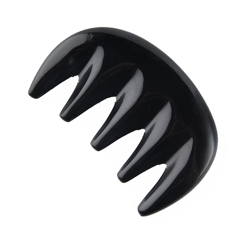 Natural Black Buffalo Horn Comb Five Teeth Meridians Comb Scraping Plate Large Head Massage Anti-Hair Loss White Hair Wide Tooth Comb