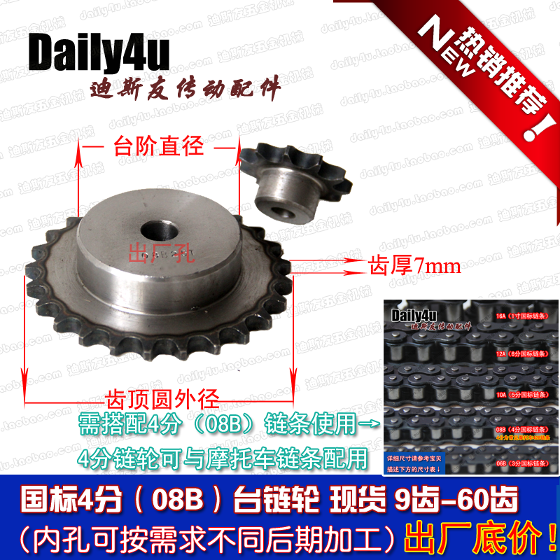 Gear sprocket 4 points (08B)22 23 24 25 26 27 Tooth pitch 12 7 428 Locomotive chain