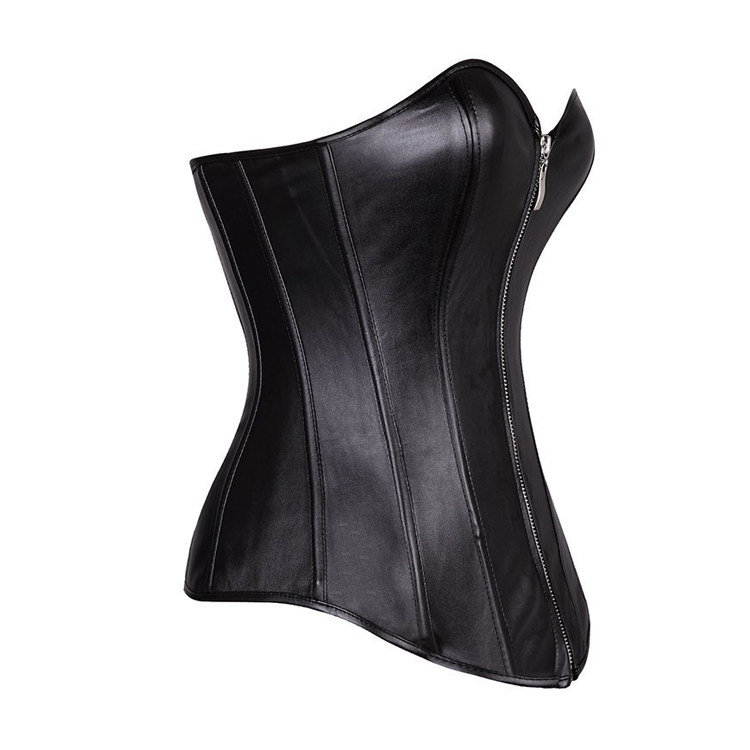 Exquisite Black PU Faux Leather Zip Court Shapewear Sexy Female Punk Rock Corset