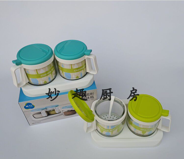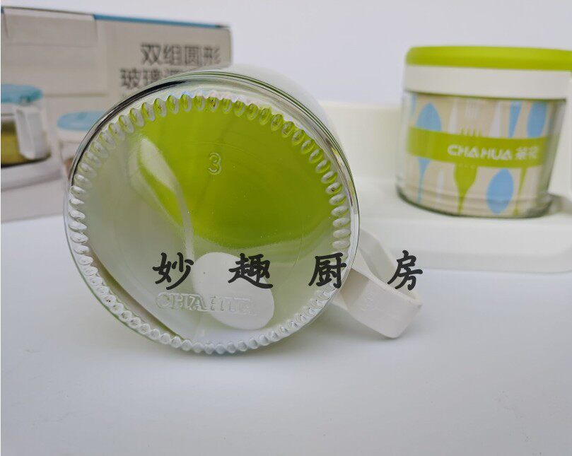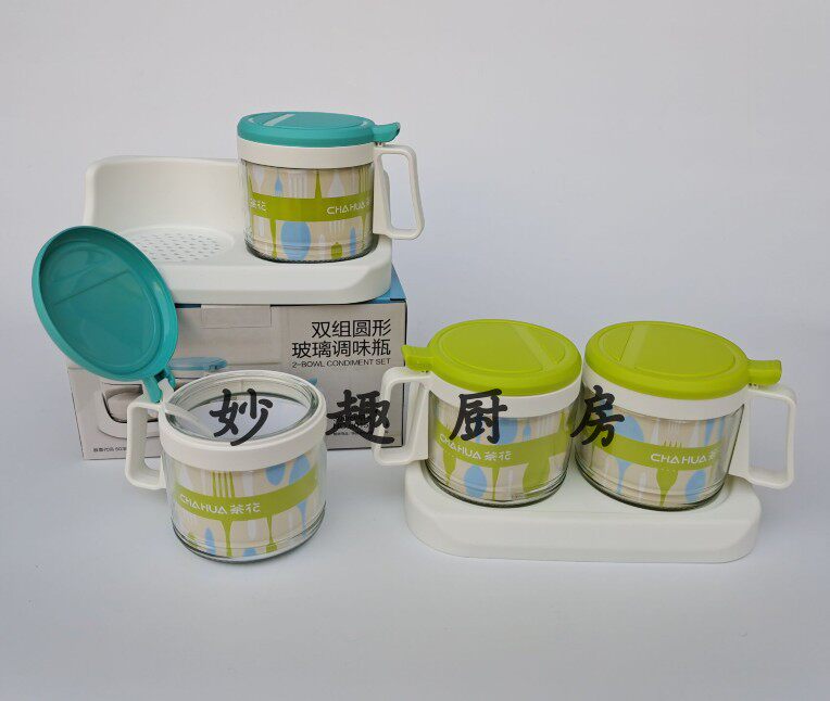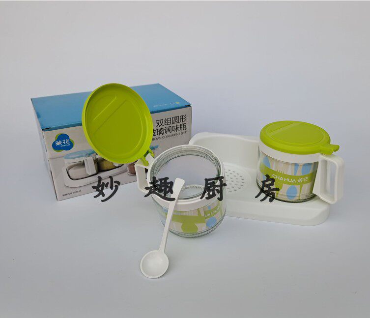 Fujian camellia 300ML double group round luxury glass seasoning box kitchen salt monosodium glutamate seasoning seasoning jar 6015