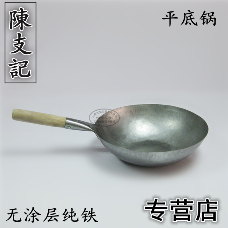 CCK Hong Kong Chen Zhiji wooden handle ears flat bottom wrought iron uncoated traditional handmade pure iron wok