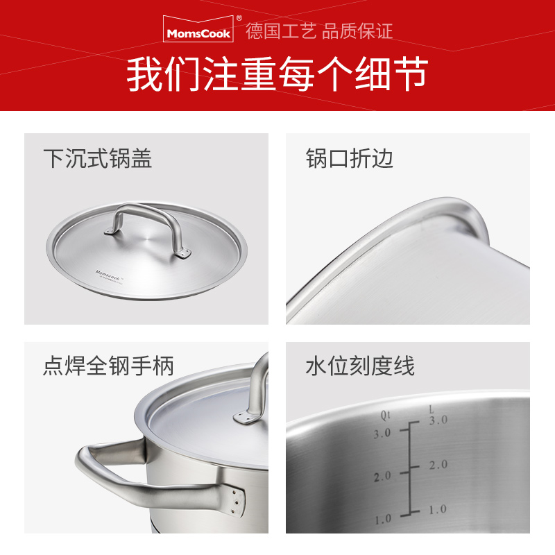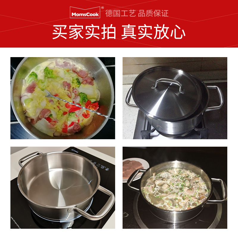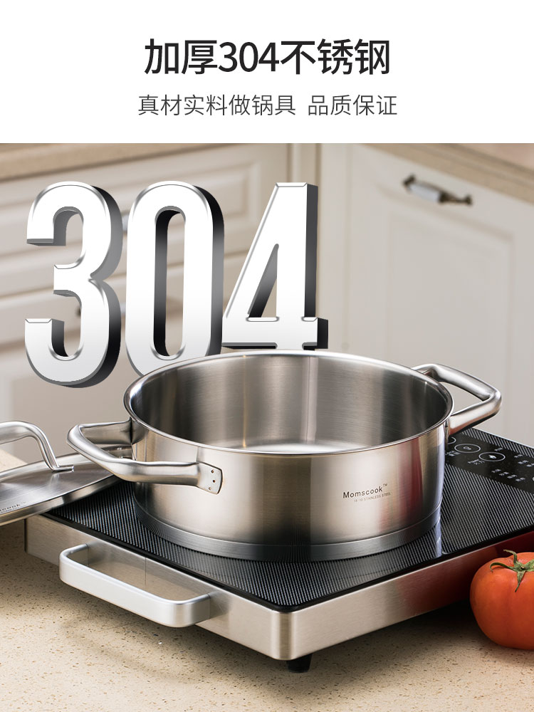 Momscook 304 stainless steel hot pot with lid rebase thickened induction oven soup pot home multipurpose pot 24CM