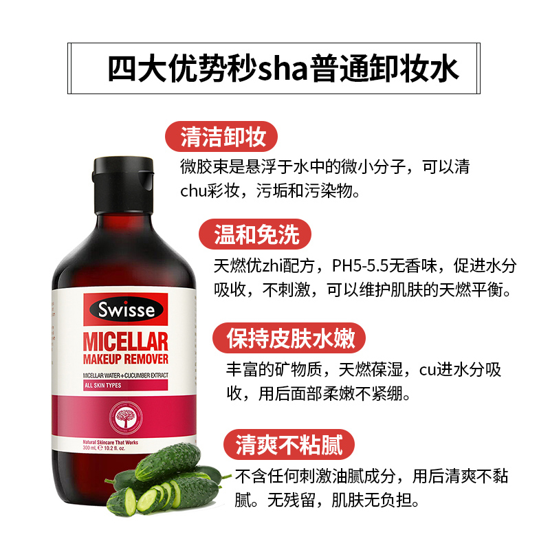 Australia Swisse Hot Spring Water Extract Cucumber Make-up Remover 300ML Face cleansing make-up remover available for pregnant women