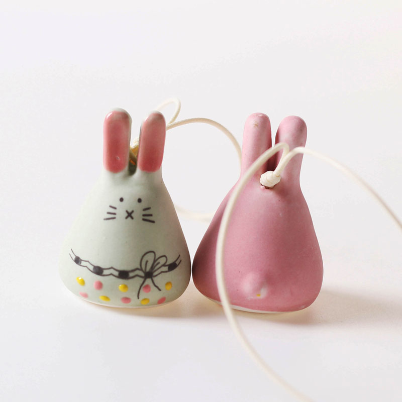 Ceramic sunny day doll cute rabbit wind chimes pendant Japanese wind chimes hand drawn color