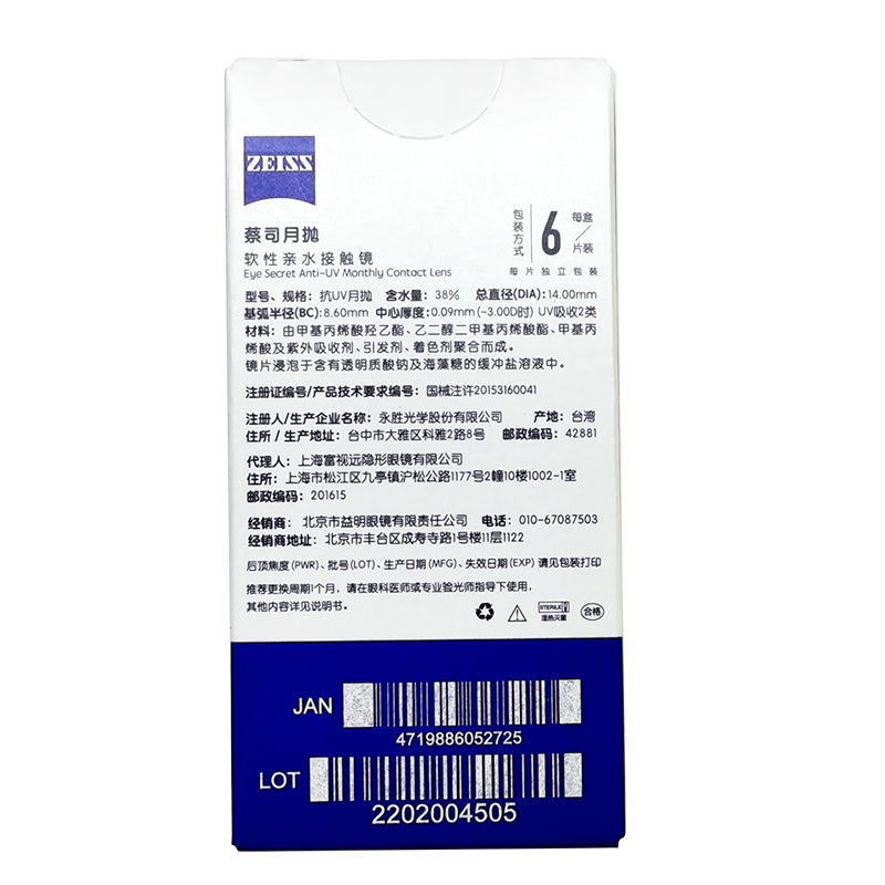 German zeiss dzeiss invisible myopia glasses moon tossed case 6 pieces of invisible glasses astigmatism non-day throwing sk-Taobao