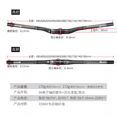 TOSEEK ultra-light full carbon fiber mountain bike bicycle handle straight handle straight handle Horizontal handle 3K pattern