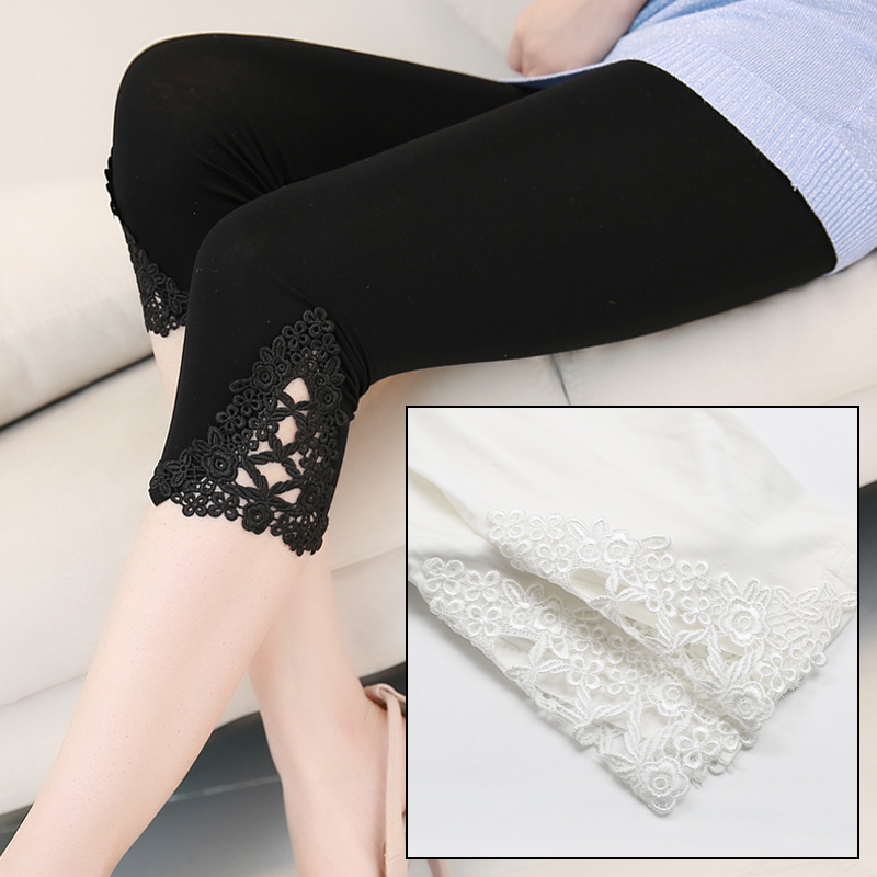 Black-Triangle lace splicing white-Triangle lace splicing grey-Triangle lace splicing grey -1 Number of flowers Seven Pants White -1 Number of flowers Seven Pants Black -1 Number of flowers Seven Pants