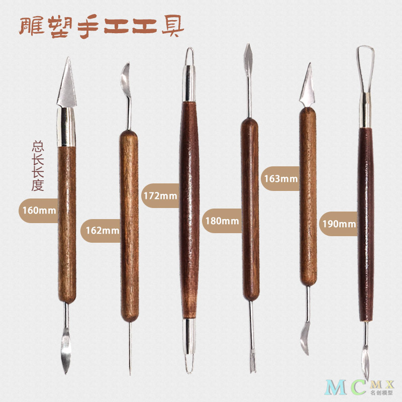 6 pieces of finely carved oil clay tools with red handle Sculpture stone plastic clay production Soft pottery clay plastic tool model set