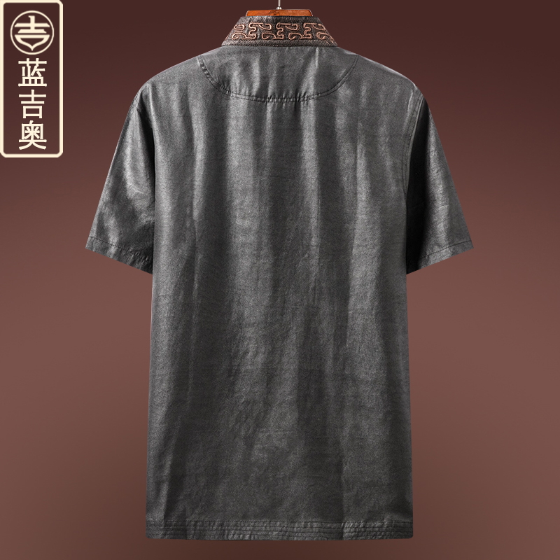 Fragrant Cloud Yarn Tang Dress Male Summer Short Sleeve Real Silk Mulberry Silk Suit Chinese Style Men's Clothes Grandpa China Wind Blouse