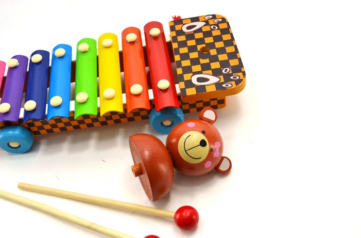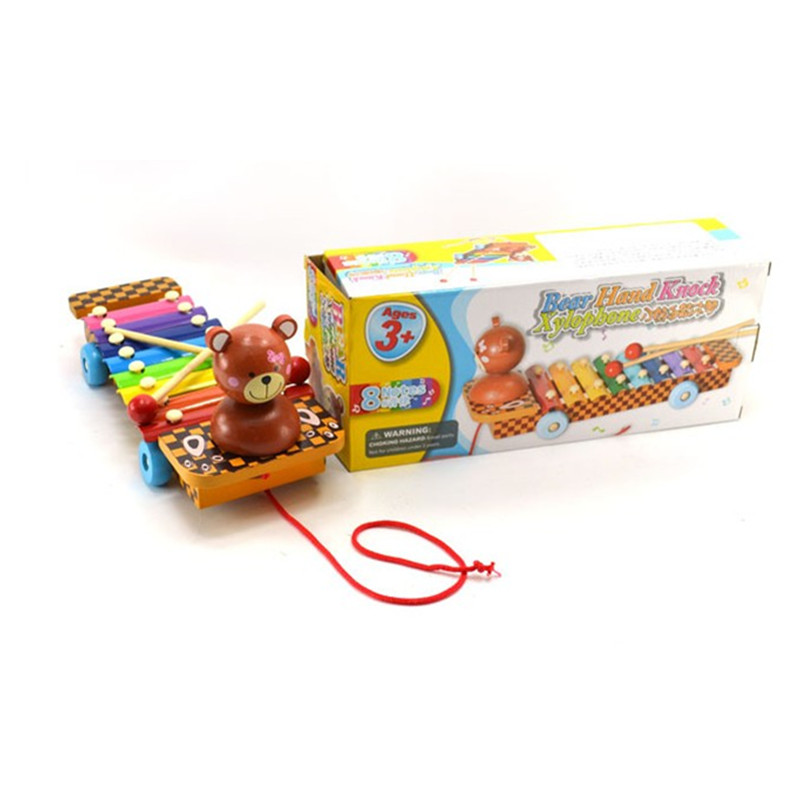 Early Church Drag Toy Wooden small Bear Knocks 8 Sound violin Early Childhood Desktop Game 3-year-old Baby Enlightenment Music Toys