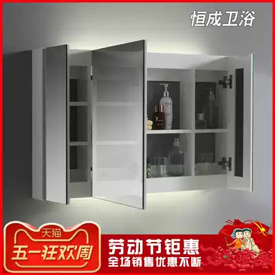 Hengcheng solid wood mirror cabinet hanging wall custom bathroom dressing room mirror cabinet mirror box waterproof storage storage storage mirror cabinet with light