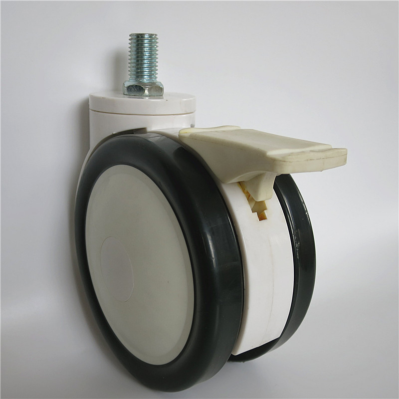Guangdong 5-inch 16mm silk-rod with brake double-piece all-plastic universal trundle multifunction stainless steel beds mute wheel