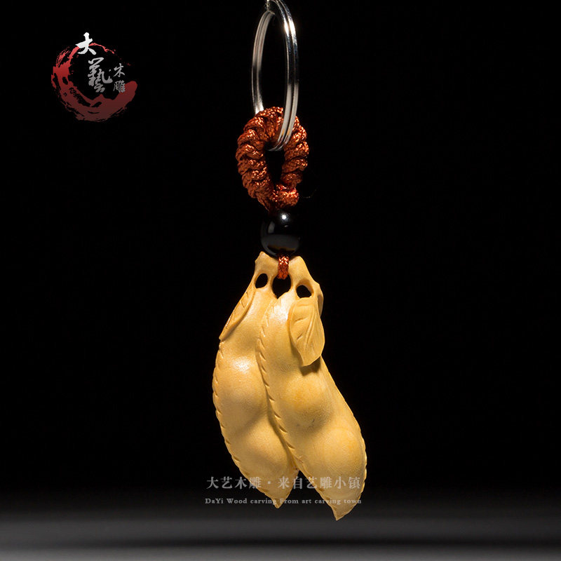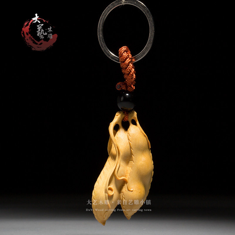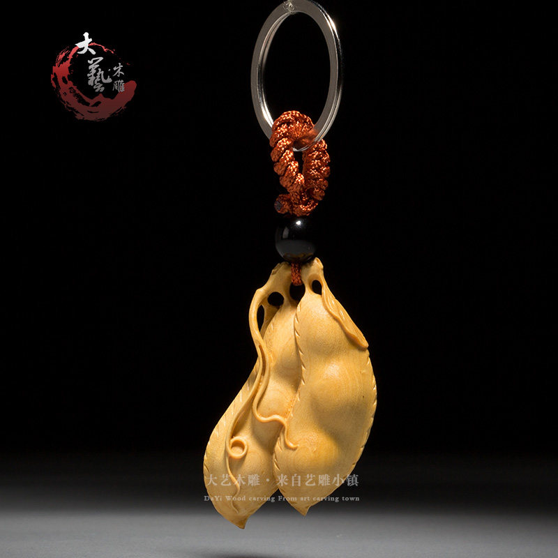 Small leaf boxwood carving keychain Chinese creative play handle car pendant Carving crafts Decorative pendant