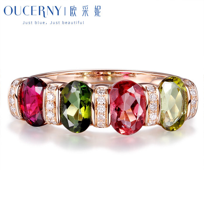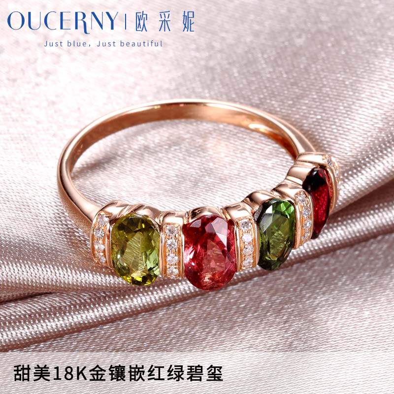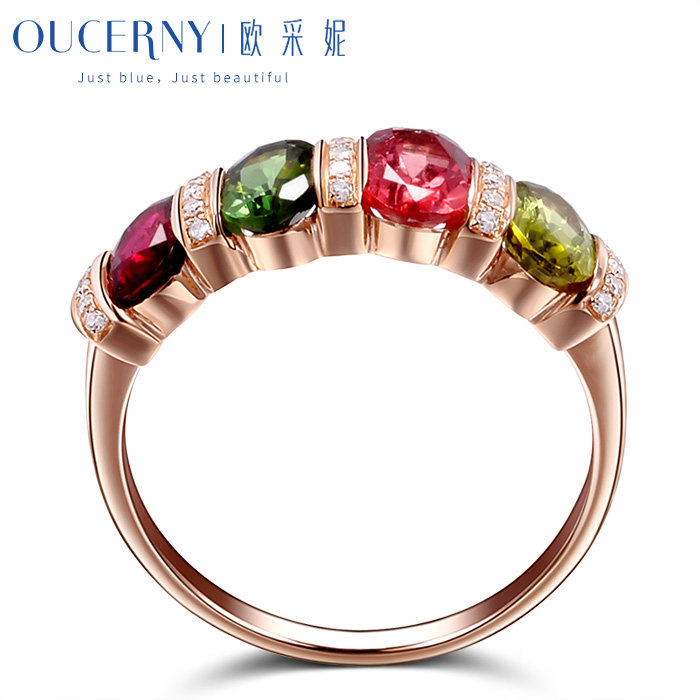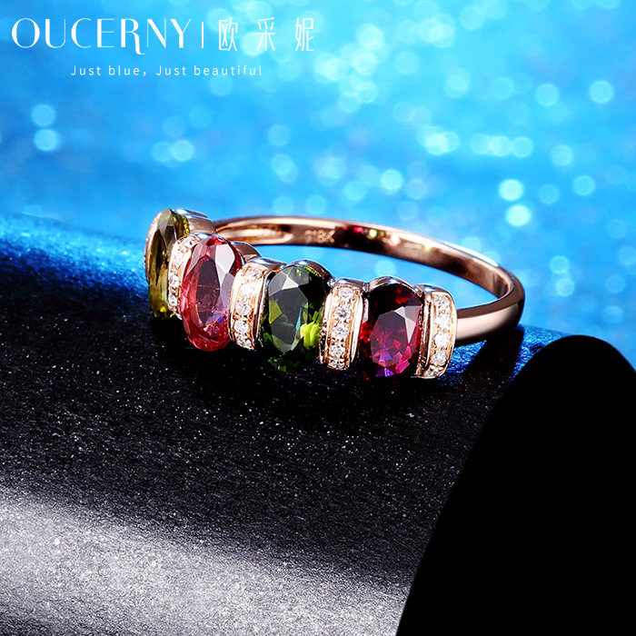 Atseni Jewelry Colorful Tourmaline Ring Set with 18K Rose Gold Colorful Gemstone Group Set Ring Ring for Fashionable Women