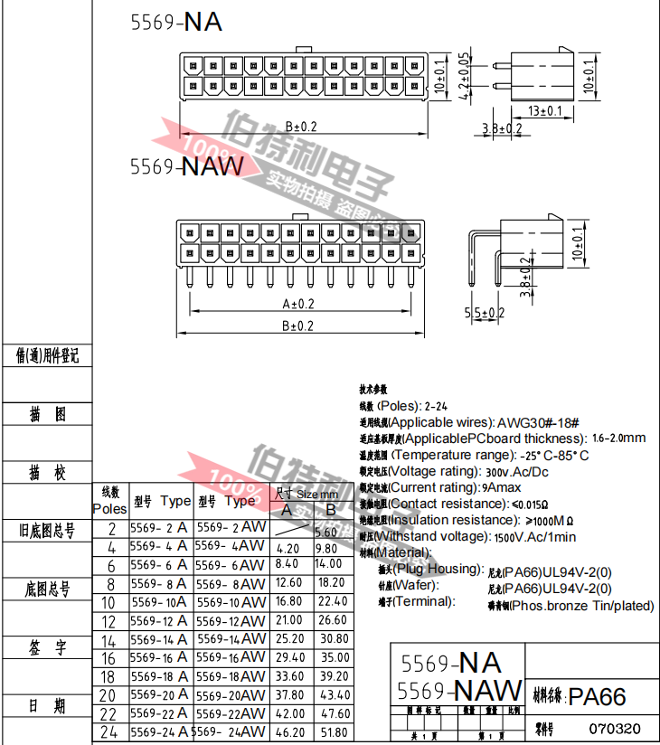 Connector 5566-5569-2P-24P curved needle needle car connector 4 2MM pitch computer extension cable