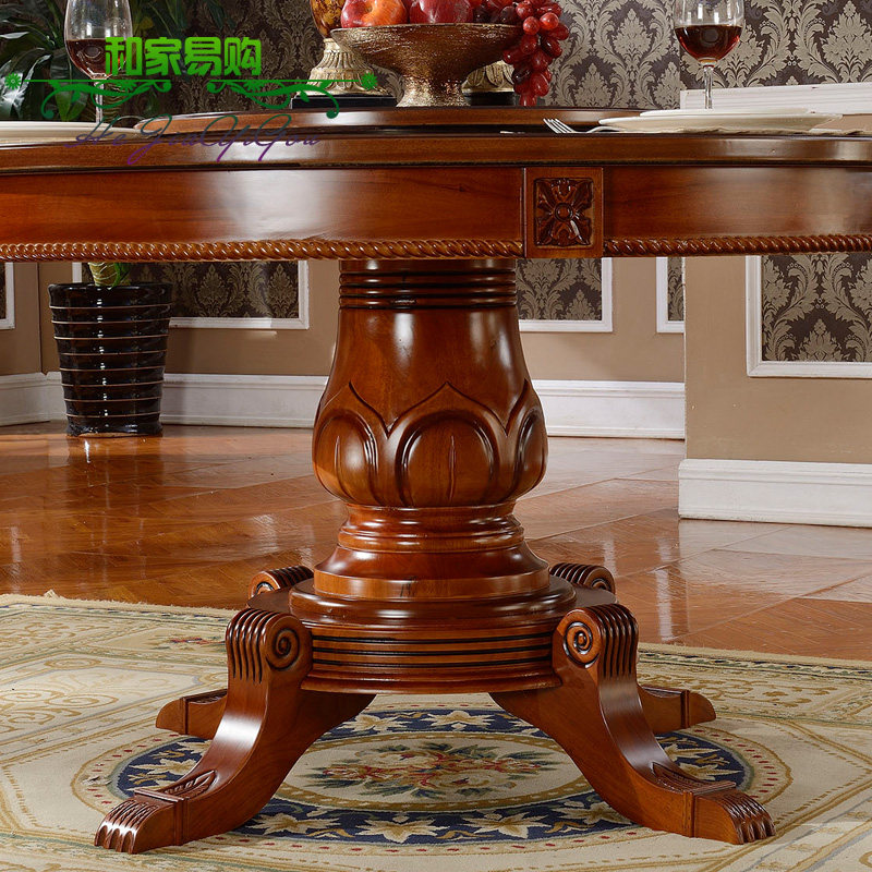 Solid wood European round dining table and chair combination American round table large table hotel dining table 1 3 1 5 1 8 meters