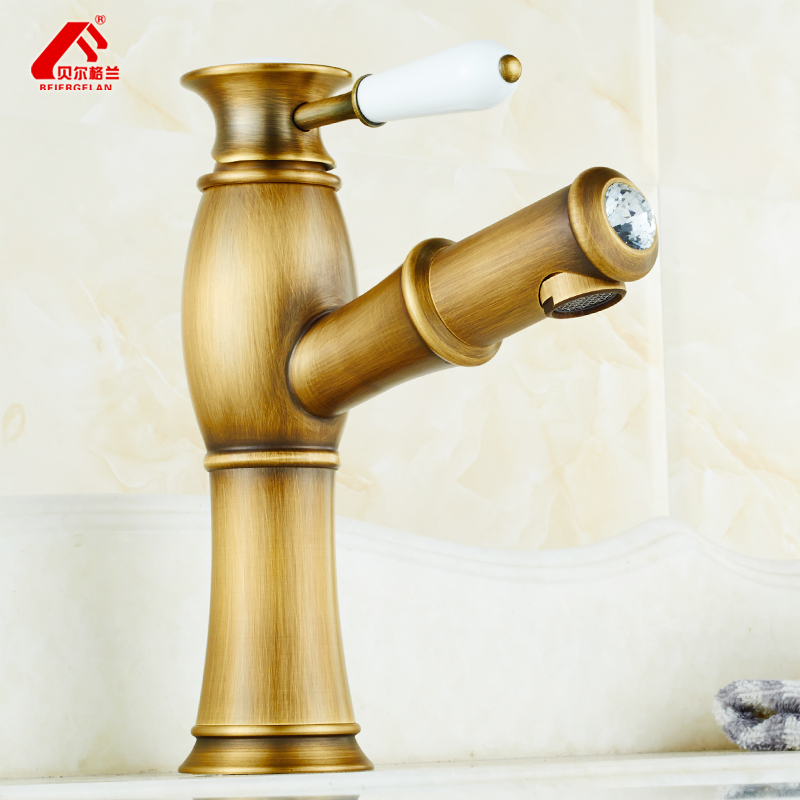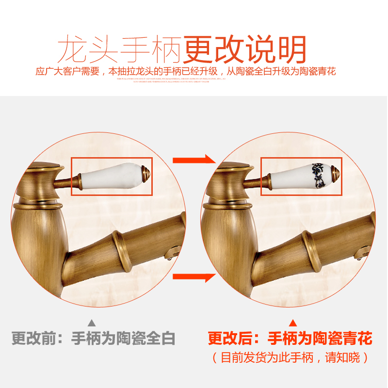 All copper telescopic basin faucet golden stage Basin hot and cold antique pull faucet wash basin retro shampoo