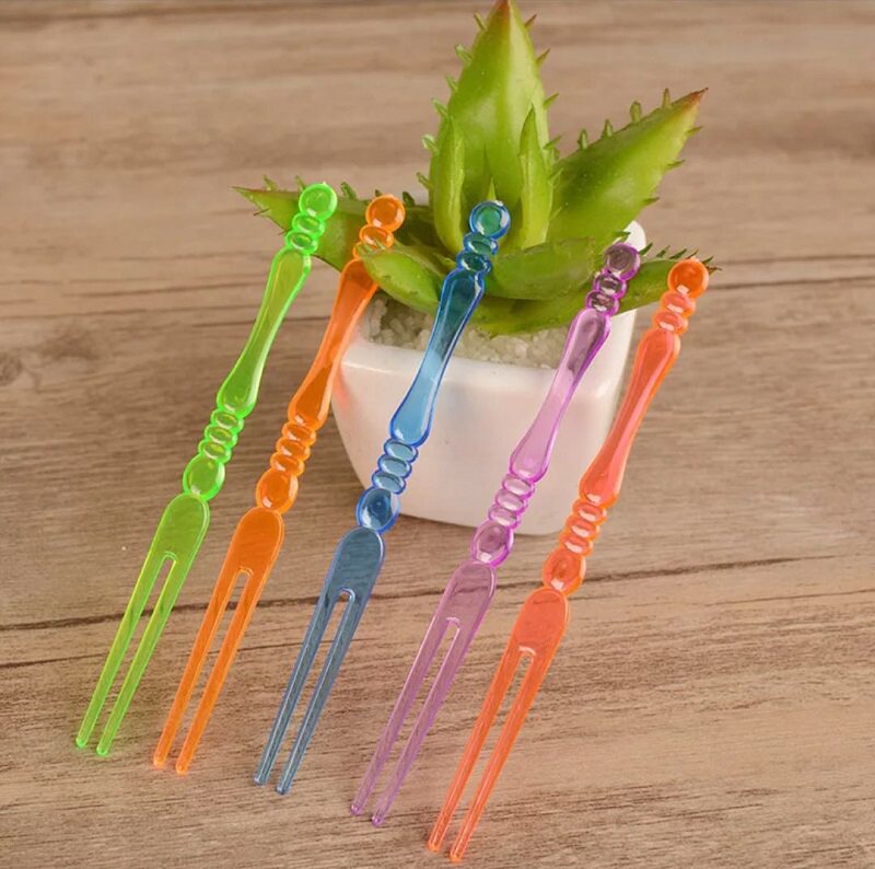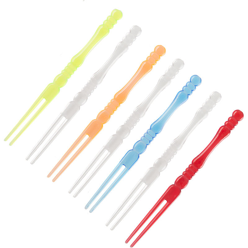 Transparent bamboo fruit fork cake fork two forks disposable fruit needle Plastic fruit label foot number 10 5cm