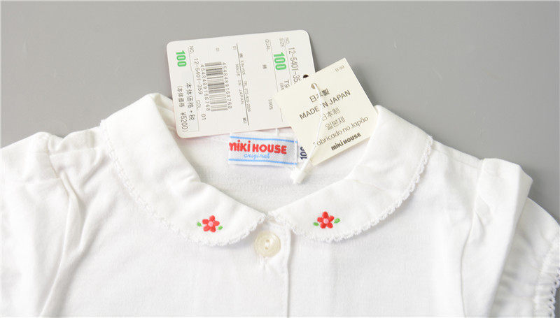 * State now 7 fold mikihouse pure cotton embroidered flower turn over short sleeve shirt 12-5401-359