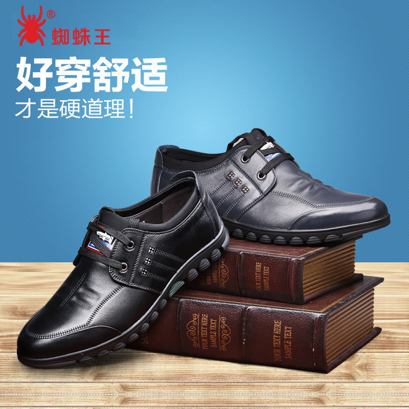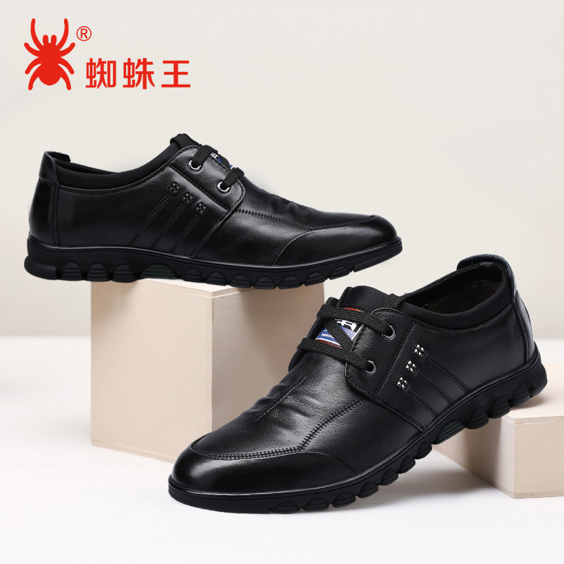Spider-King men's shoes casual spring new leather leather men's leather shoes hundred pairs with round-headed black shoes man
