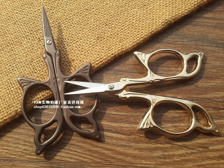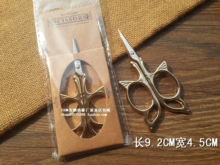 Eurostyle Retro Scissors Mini Creative Stainless Steel Golden Small Scissors Wire Head Hand Cut Small Number Tea Bag Wholesale