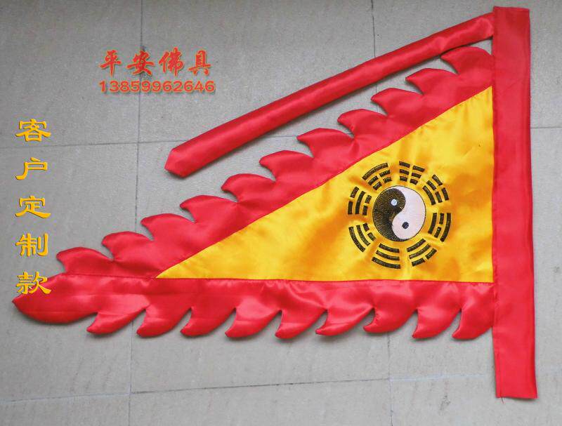 Temple supplies direct sales Embroidered double-sided dojo five camp ling flag five square ling flag feng shui triangle antique flag bunting flag