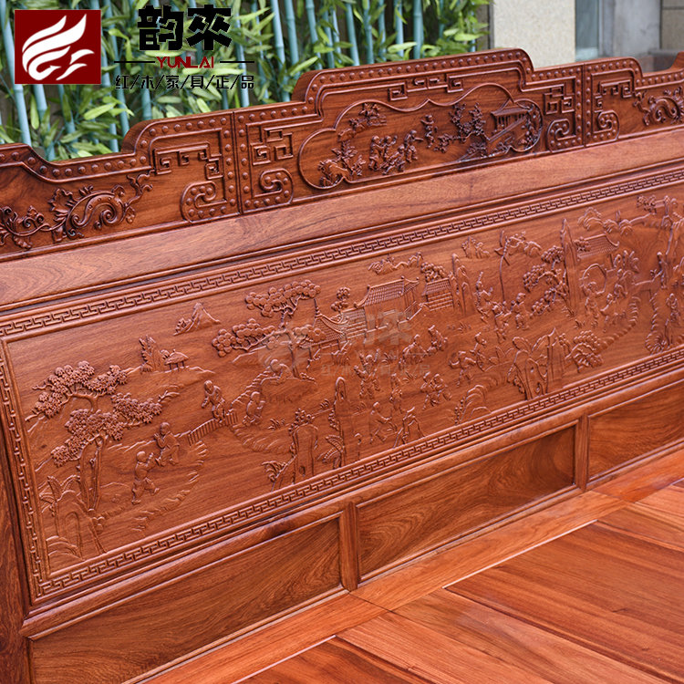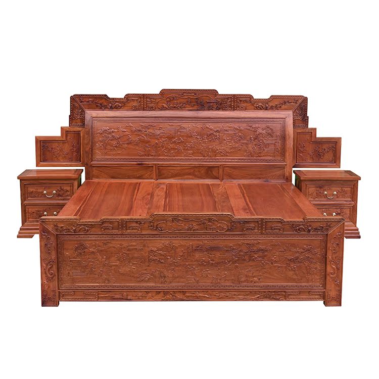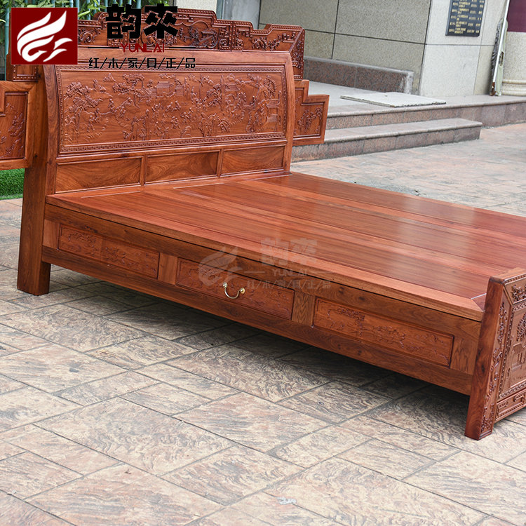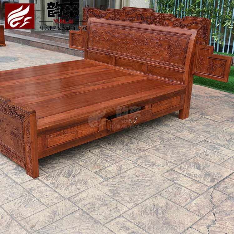 Myanmar flower pear wood 1 meter carved mountain baoding bed with drawer solid wood red wood bedroom furniture large fruit purple sandalberg