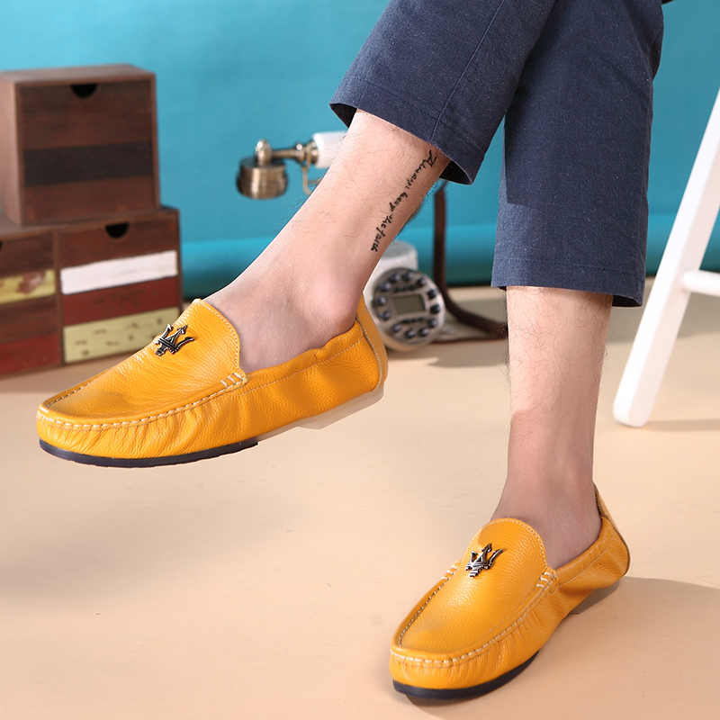 First layer cowhide white beanie shoes men's leather summer one pedal Korean version of the trend lazy soft bottom casual leather shoes tide
