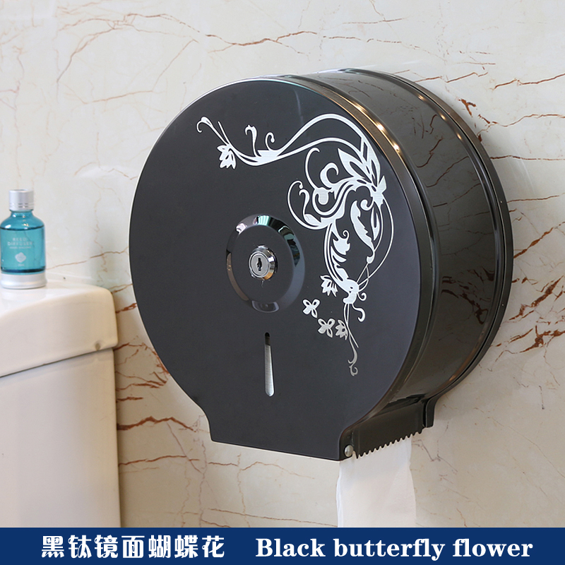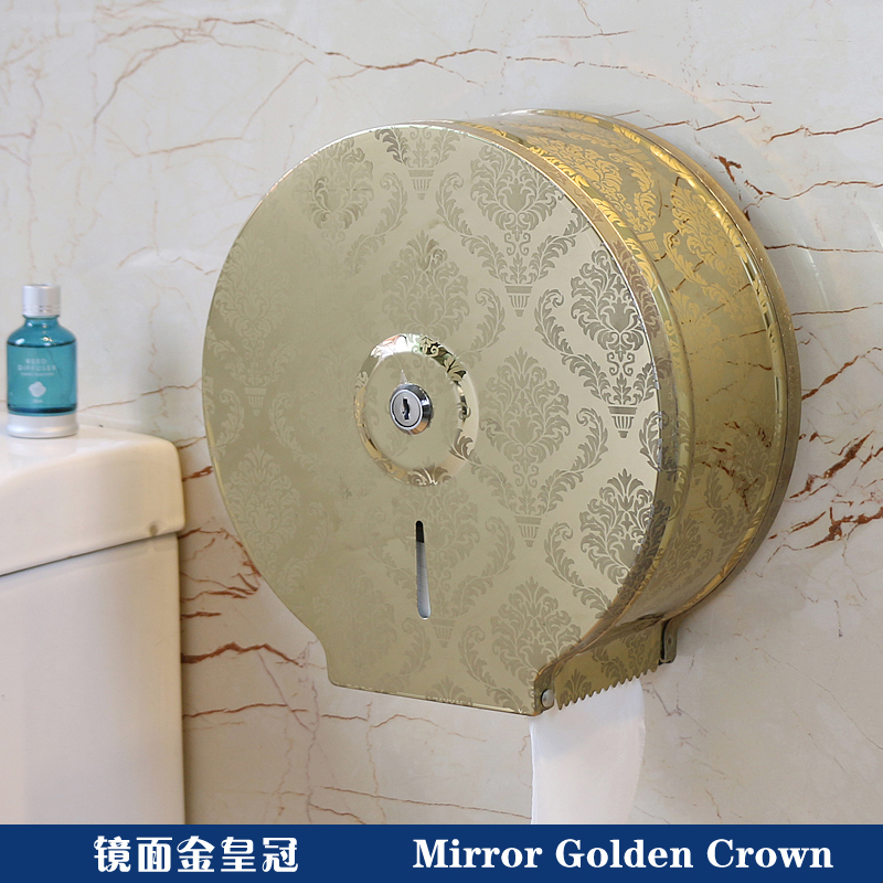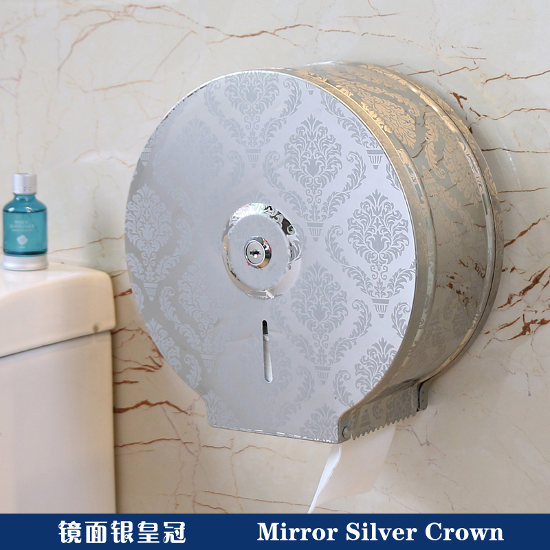 Stainless steel tissue holder Non-perforated large roll paper box Hotel powder room toilet paper box Wall-mounted waterproof large plate paper holder