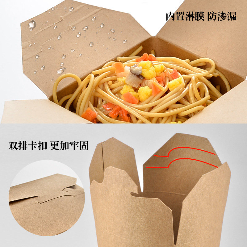 Commercial Ji Thickened Kraft Paper Bowl Disposable Paper Bowl Lunch Box Takeaway Meal Kit Round Packed Box Snack Box Noodle Bowl