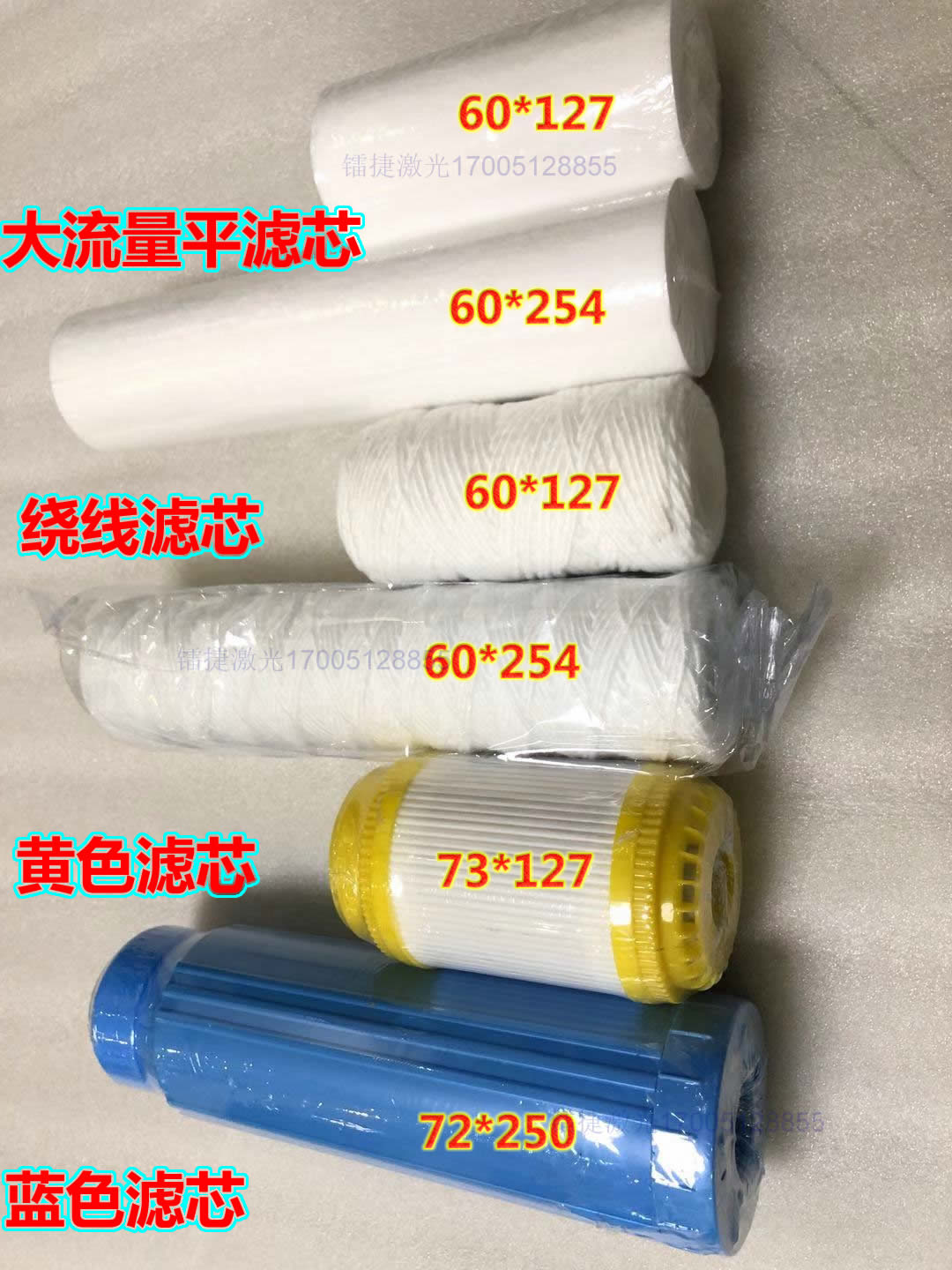 Large flow flat filter 60*127 Large flow flat filter 60*254 Winding filter 60 long 255 winding filter 60 long 127 Blue filter 72*250 Yellow filter 73