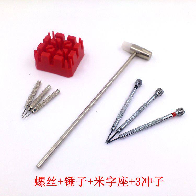 Metal belt remover 3-pin golden belt remover Hammer 3-pin screw Hammer Rice-shaped seat Punch rice-shaped seat Hammer 3 punches practical metal belt remover set all-around metal belt remover set full