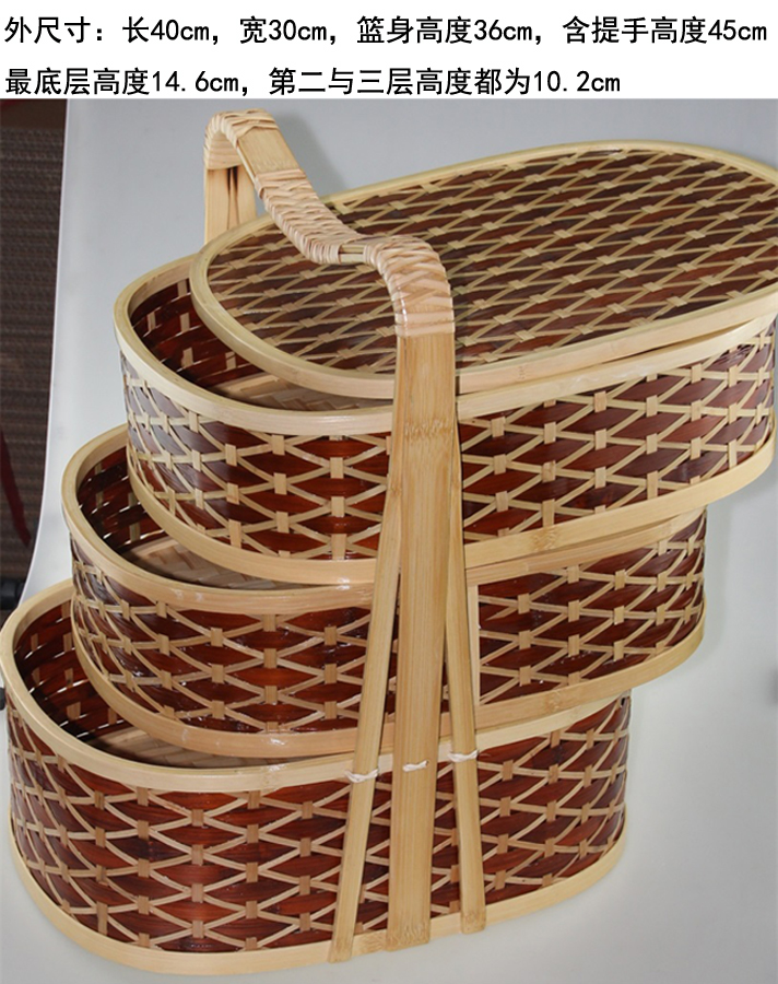 Cross-shaped three-layer delivery basket Bye-bye basket Takeaway Meal with Handheld Bamboo Basket Gift Basket of Bamboo Choreographic Basket Food Box