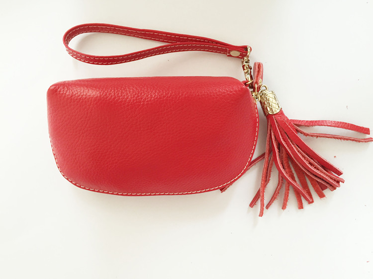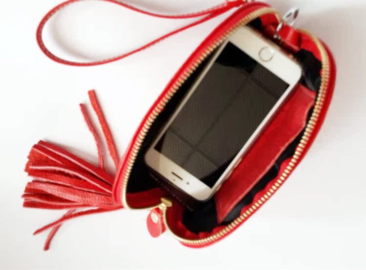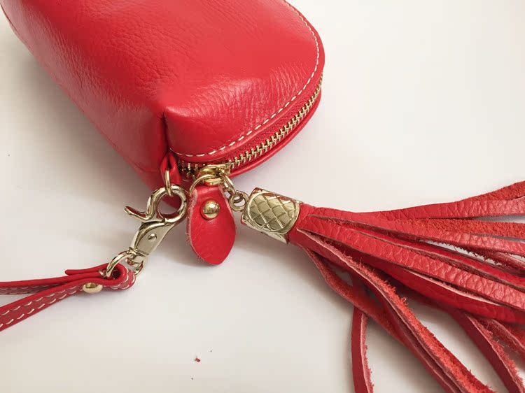 Leather shell mobile phone bag 8P cowhide handbag large-capacity coin purse hand-held hand-held bag tassel top layer cow wear-resistant