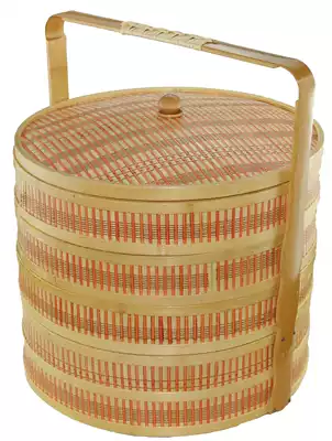 Bamboo delivery basket four-story delivery basket gift basket wedding basket hotel meal delivery box bye-bye basket