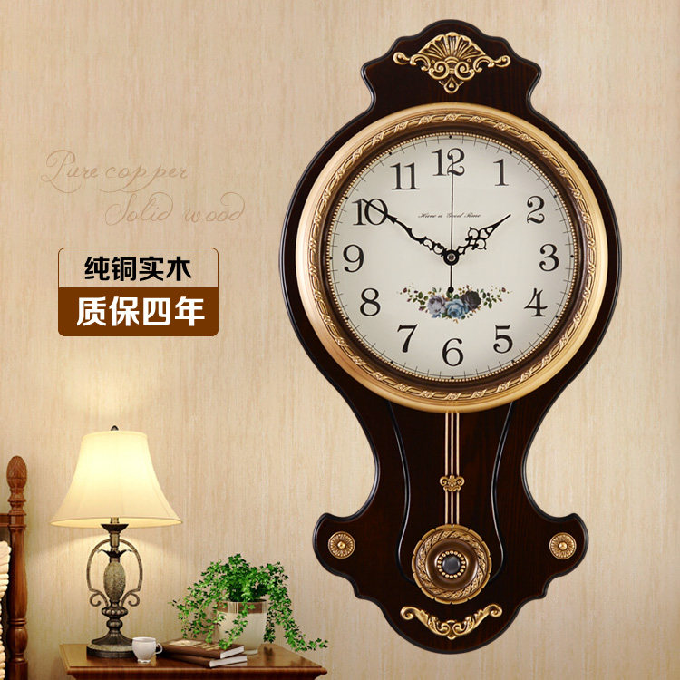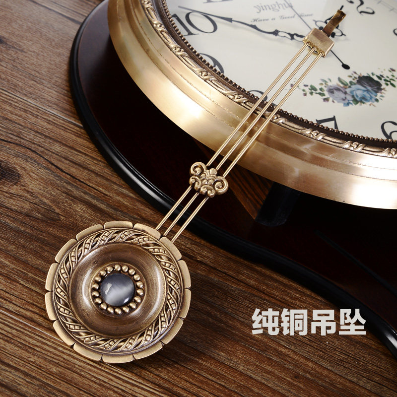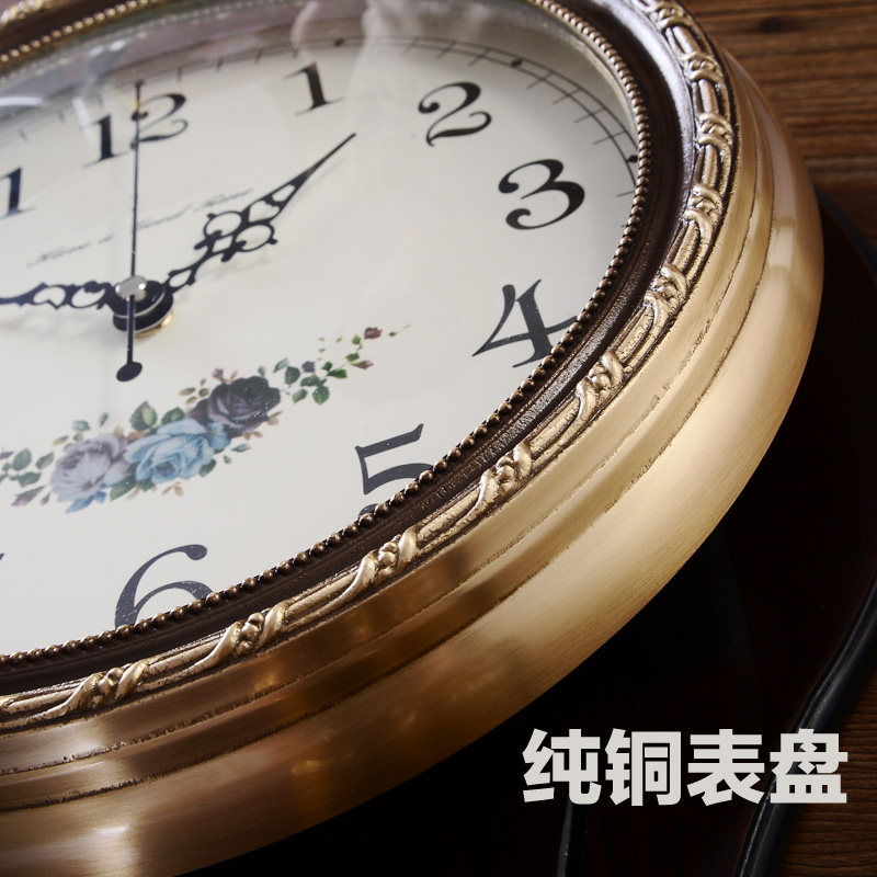 Pure copper solid wood European-style single-sided wall clock pastoral mute town house living room clock wall watch bedroom quartz clock