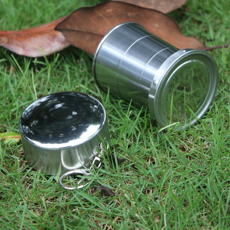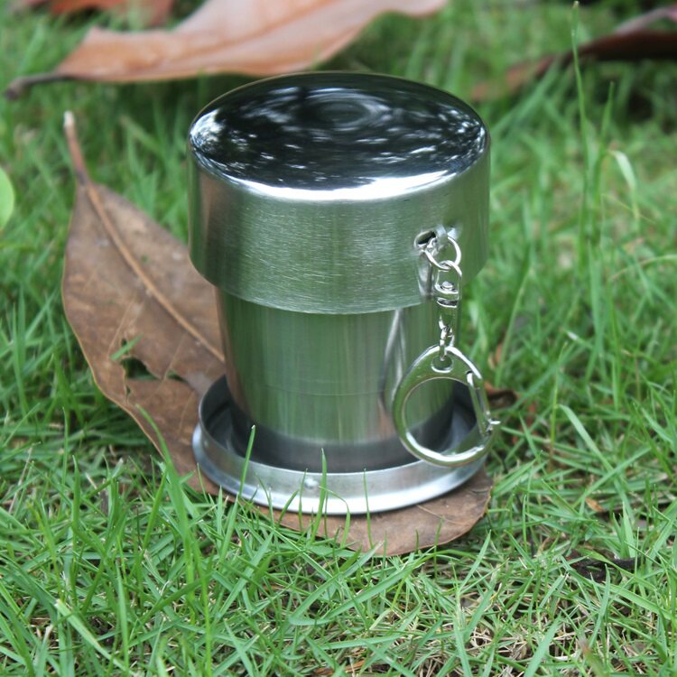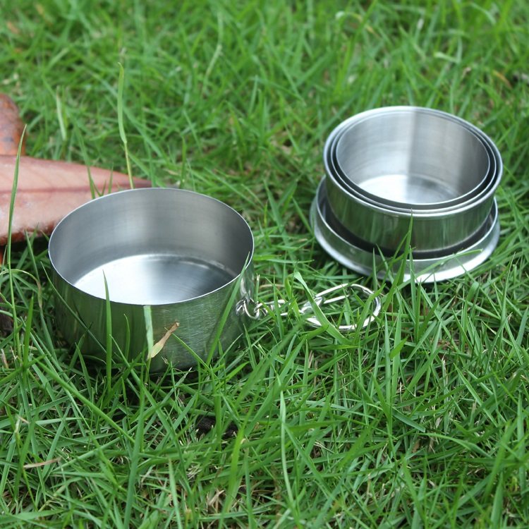Outdoor folding glass camping portable travel extended stainless steel wide-mouth wine glass mini large field three cups