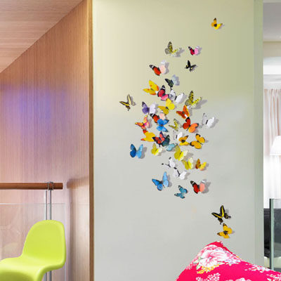 Emulated butterfly decoration 3d Cubism wall sticker Bedroom Room Wall Wall Self Adhesive Creative Personality Wall Sticker