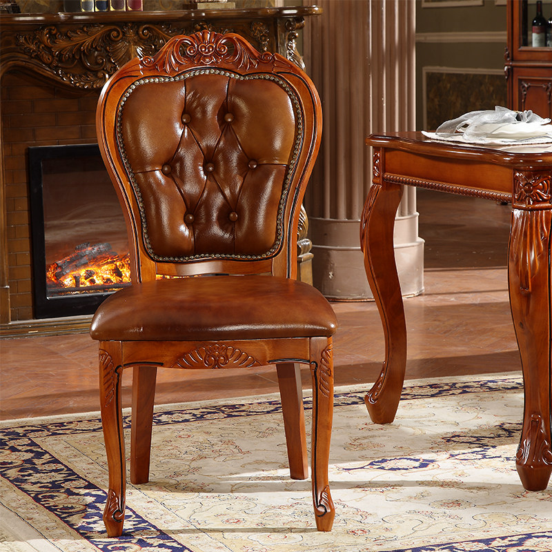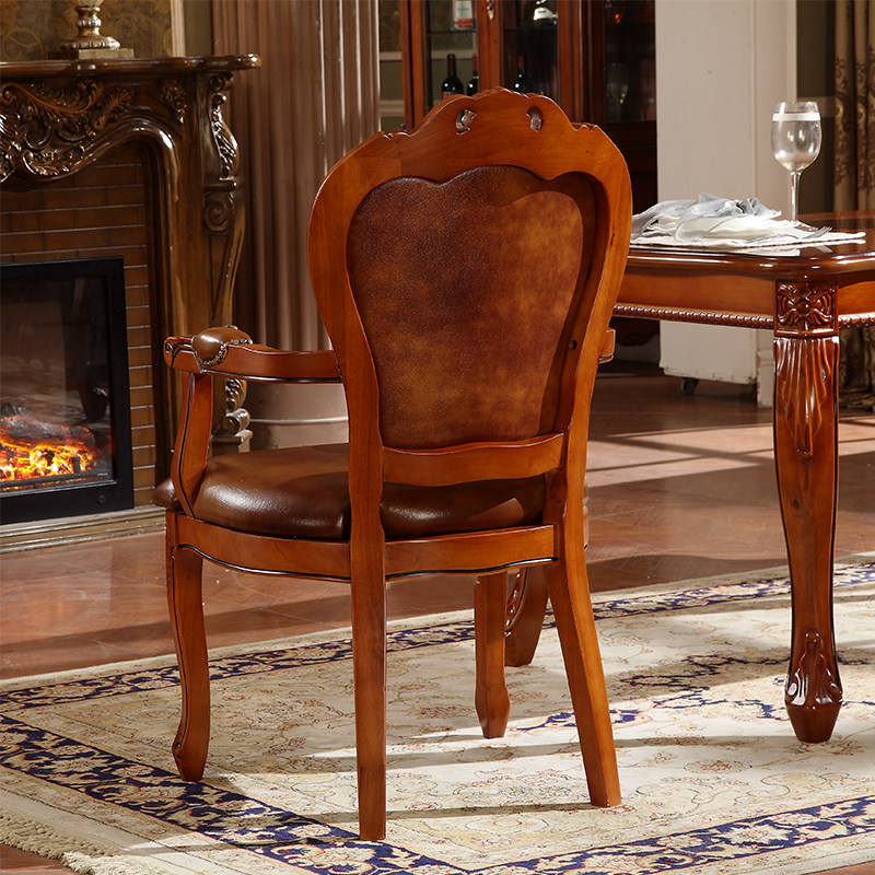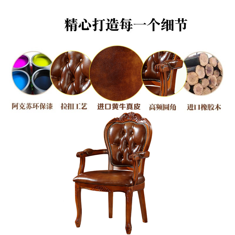 European-style solid wood dining chair American-style backrest simple household stool Mahjong retro reception negotiation leather armchair