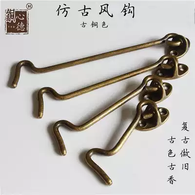 Chinese antique wooden door window all copper window hook windbreak hook pure copper windproof hook pull door buckle extension rod adhesive hook